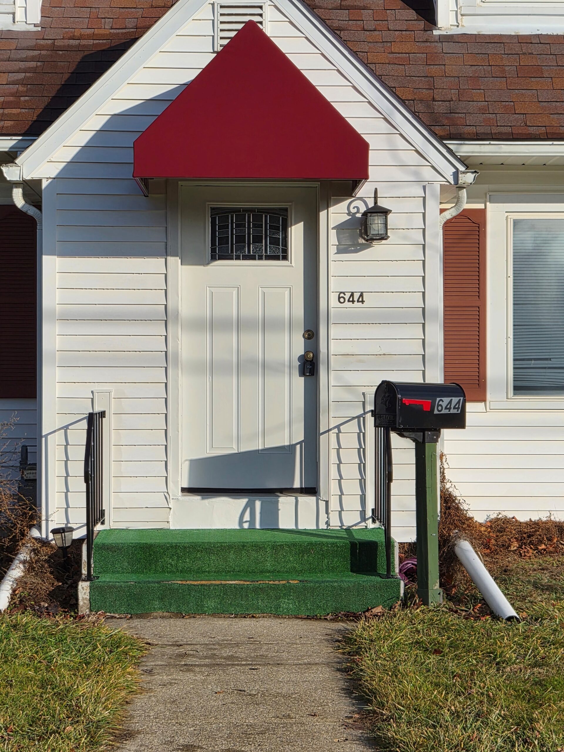 Shed style awnings provide shade in the summer and add beauty to the home.