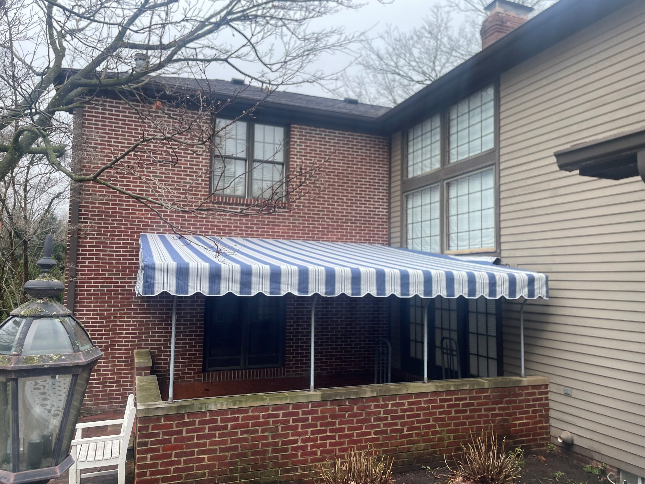 Our own unique reverse truss system allows us to add awnings to patios with low clearance incorporating your existing gutters.